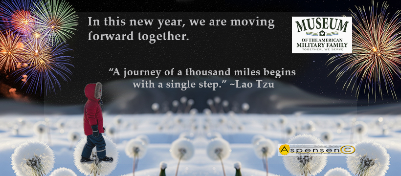 The MAMF January 2026 Facebook Banner Ceilon Aspensen, January 1, 2026December 29, 2025 January’s Museum of the American Military Family (MAMF) theme is “Moving Forward Together.” January is traditionally a month of New Year’s resolutions and new beginnings. How many New Year’s resolutions have you made over the years that you’ve not kept? I suspect that most of us have broken more than we’ve followed through on. They’re also usually pretty impulsive or rooted in unfulfilled desires: lose weight, make more money, write a novel, etc. One of the reasons we are not successful at achieving the goals we set in New Year’s resolutions is because we try to go it alone. Research shows that people who share their goals with others have more success at hitting them. Research also shows that strong, healthy relationships help us to stay healthier and more confident. This past year was a difficult one in our country. We faced many challenges and many of us have been fearful about our future, and where our country might be heading. Divisive language and policies designed to create “us versus them” scenarios has pitted many Americans against each other. We’ve had to look hard for “the helpers” this past year (as Mr. Rogers used to tell us to do). What do we want our 2026 to look like? Many things are out of our control, but many others are not. We can pull together, be kind, keep our friends close, add friends to our lives, be the helpers, spread goodwill, support one another, and be the change we want to see in the world. We can all get where we want to go together, moving forward together. No Lone Rangers this year. It’s more important than ever for us to keep an eye on our neighbors, share and spread love and joy, and keep our collective hopes up. Wishing you the happiest of New Years in 2026.